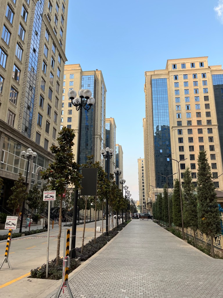 Nous trouvons du coca pour nous faire tenir l’heure qui suit, nos huilons vite nos chaînes et nous commençons nos premiers coups de pédales au Tadjikistan ! C’est beaucoup de fun, mais ça se transforme vite en beaucoup de concentration en ce qui me concerne, puisque les voitures roulent n’importe comment. Nathan n’est par contre en rien perturbé par le code de la route Tadjik. Finalement, nous roulons sur le grand boulevard de Dushanbé et réalisons que la capitale est en fait plutôt riche ! Le coût de la vie ici est même plus élevé qu’à Samarcande: surprise !