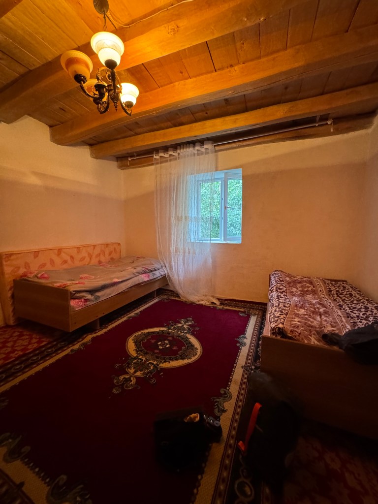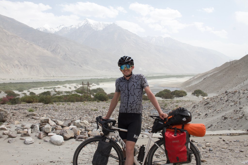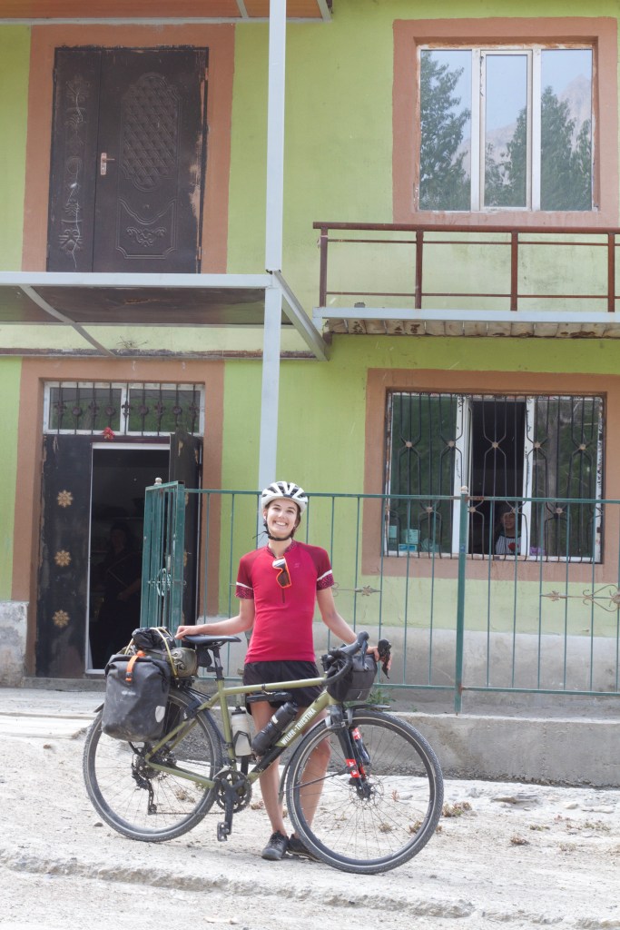 Je passe une mauvaise nuit et au réveil, peine à croire que l’on va arriver à dépasser Langar. En route, on se fait rattraper par Alex, un cycliste espagnol que l’on a déjà croisé quelques fois. On roule ensemble jusqu’au village de Shitkarv où l’on fait de nouvelles provisions. Alex reste un moment la bas, tandis que l’on repart. On a lu qu’à Shitkarv, « the road turns to shit ». En effet, la route devient de pire en pire. On s’arrête pour se faire à manger en bord de route ombragé et l’on se fait rattraper par Alex et Victor qui transportent un énorme melon avec eux. On mange tous ensemble, mais Nathan et moi nous mettons en route avant, sachant que l’on est un peu plus lents. On a un mega vent de dos qui nous fait grimper le col en Gravel degeu hyper facilement. C’est vraiment le bonheur ! On ne se fera donc pas rattraper par les autres ce jour-là ! On pousse jusqu’à un homestay, même si la surface terrible sur laquelle on roule nous tue. On est vraiment très heureux d’arriver là et on est prêts à payer n’importe quel prix pour un peu de confort. La dame le voit bien est on paye presque le double que d’habitude, mais peu importe ! On a droit à un repas composé de frites super grasses maison (encore un truc facile à digérer pour mon ventre, au secours). Très bon malgré tout !